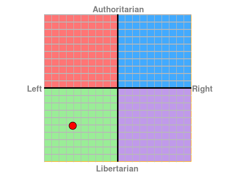 But I digress. I wanted to tell you about the two big political shifts in my life. You've just had the story of my first, in which, as a young adult, I came to hold a set of left-libertarian beliefs centered around social justice and fairness. I no longer believed the things my parents had inculcated in me. I thought power relations permeated everything (I still do). I believed in structural inequality and the existence of systemic "isms" (racism being but one of them). I felt that discourse was, if not the principal medium through which power was wielded in our daily lives, was the one that I was most likely to be able to have an influence on and was therefore the thing I was most interested in. While I also knew that physical domination and the threat of violence was a thing, I tended not to dwell on it. I called myself a feminist, but more generally than that, fancied myself as someone committed to social justice for all human beings, regardless of their group identity. This was long before the term "SJW" had been coined, or "intersectionality" and "identity politics" had been weaponized. I haven't really changed much since those days, 20 years ago. My results on the political compass test land me pretty much smack bang in the middle of the "left-libertarian" quadrant, and I don't think I've moved much from that spot in two decades: